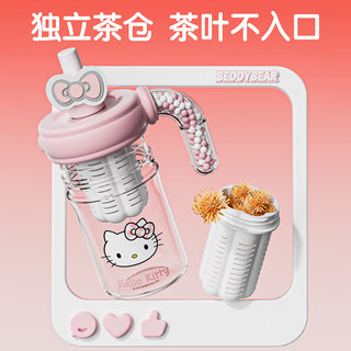 杯具熊海洋球塑料吸管杯成人茶水分离杯子女生水杯夏天带茶仓手柄