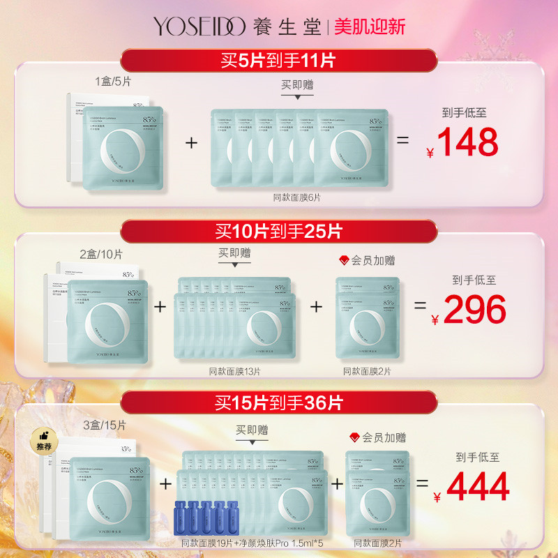 :原价148元,现在领取5元优惠券,预估到手143元,【到手11片】养生堂白桦水润盈亮精华面膜;养生堂白桦水润盈亮精华面膜保湿滋润面部护肤养护肌肤温和无刺激,(右上角淘金币入口加抵5.25)【买即赠同款面膜6片】
