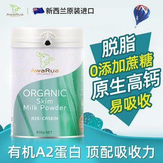 阿瓦鲁脱脂牛奶粉成人中老年高钙无糖0脂肪低脂新西兰进口有机A2