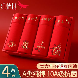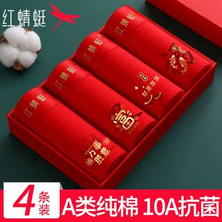 红蜻蜓男士本命年内裤男纯棉平角10A抗菌红色马年喜庆大码四角裤