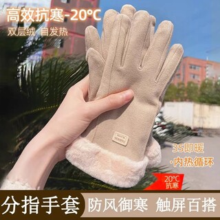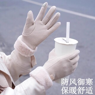 冬季电动车手套加厚加绒保暖麂皮绒骑行防寒触屏男女士防风手套