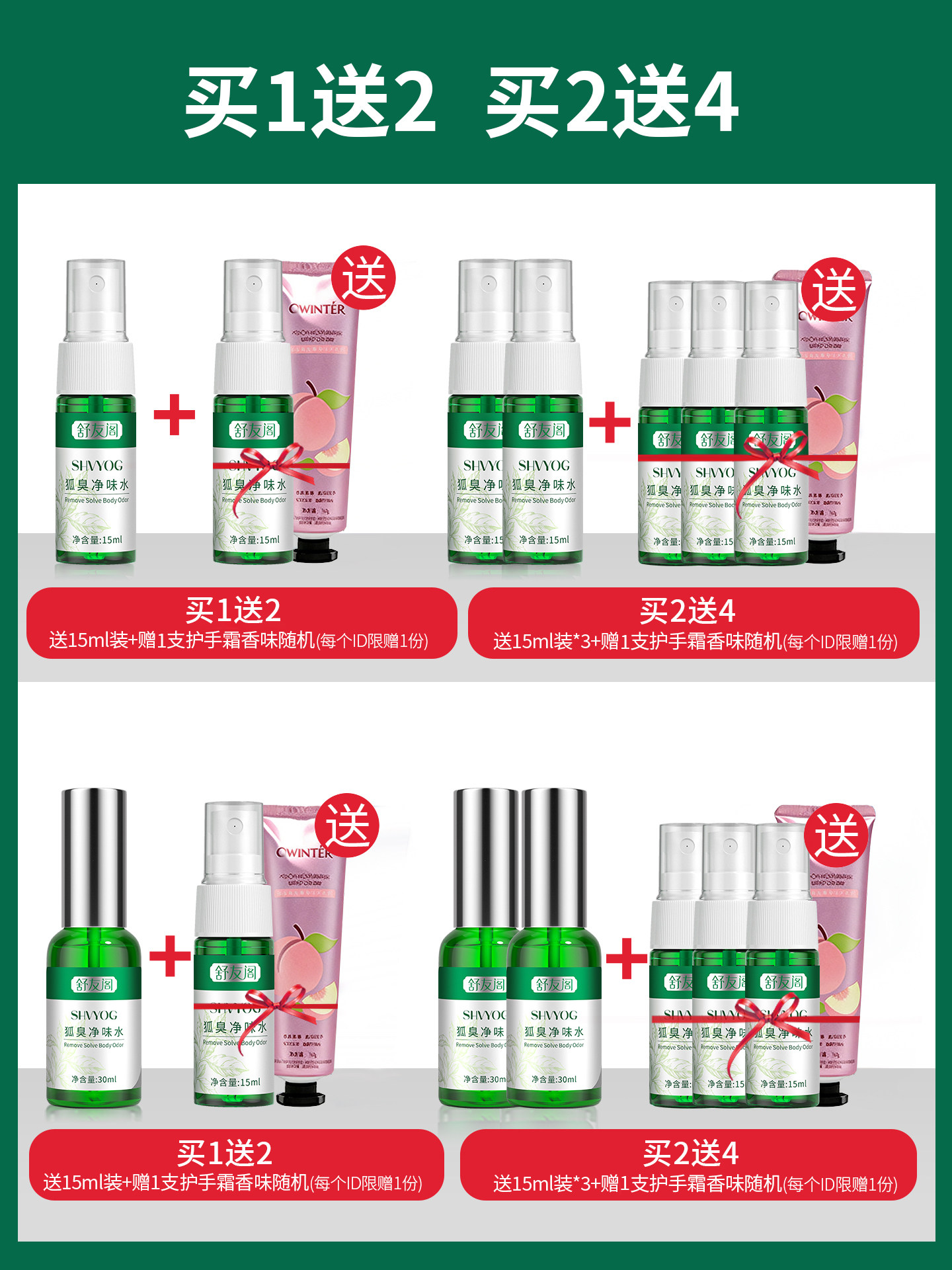 :原价26.3元,现在领取6元优惠券,预估到手20.3元,【买2送4】舒友阁去狐臭止汗露净味喷雾*3;买1送2,买2送4!国货品牌!专注汗臭、狐臭去异味20年+!累积爆卖200万+!女篮亚青赛郭子瑄代言,植物草本更止汗,更净味,不是非有狐臭才能用!夏天有汗味、体臭等异味都能用,效果好到爆,无限回购【赠运费险保密发货】