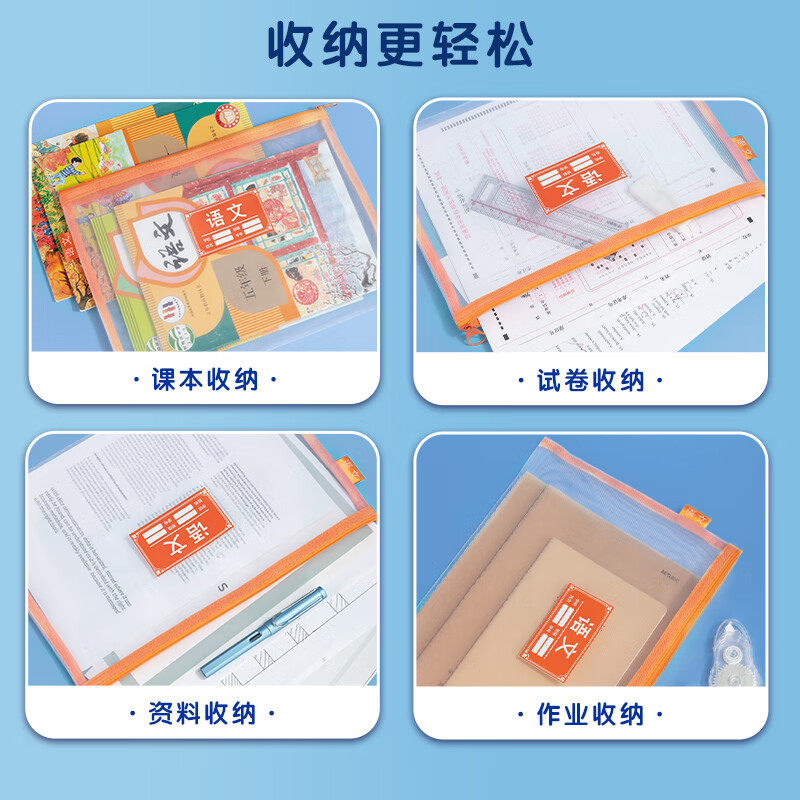 晨光文件袋单层双层网纱拉链袋套装资料袋科目分类袋文件袋小学生加厚学科袋大容量学生试卷收纳袋学习收纳袋