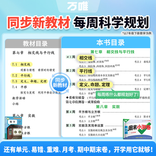 2026新版万唯周末半小时小测卷下册初中七八年级下册同步教材周测单元测期中期末试卷语文数学英语物理道法历史人教北师万维教育