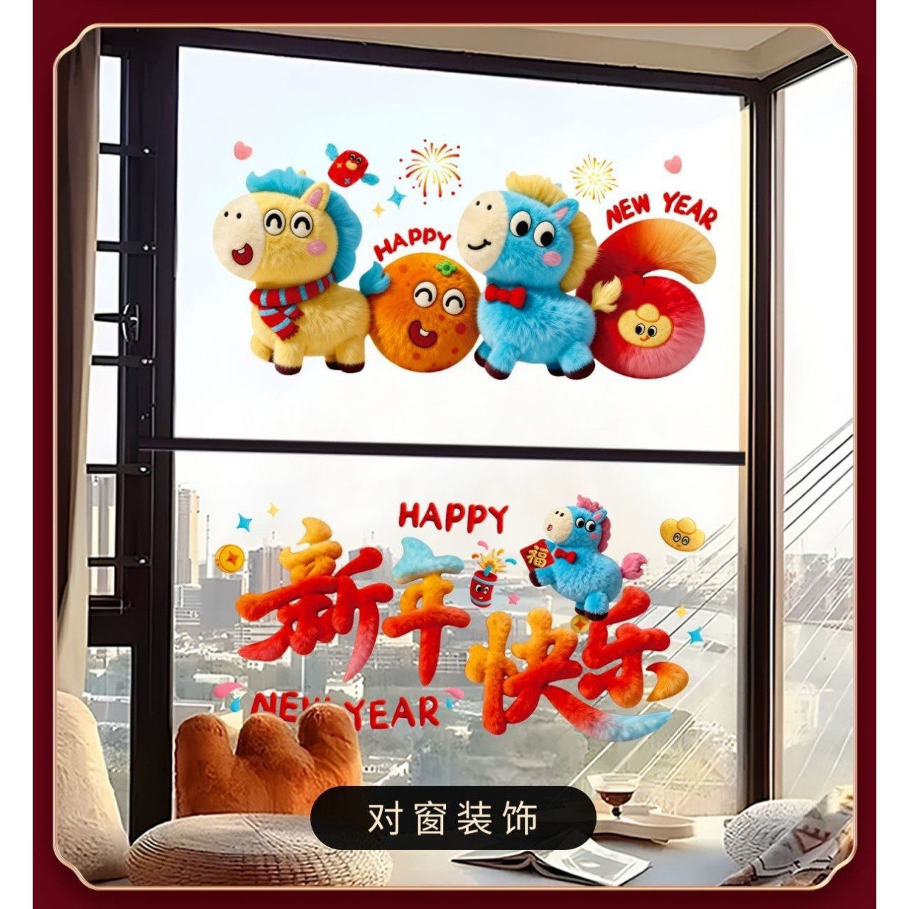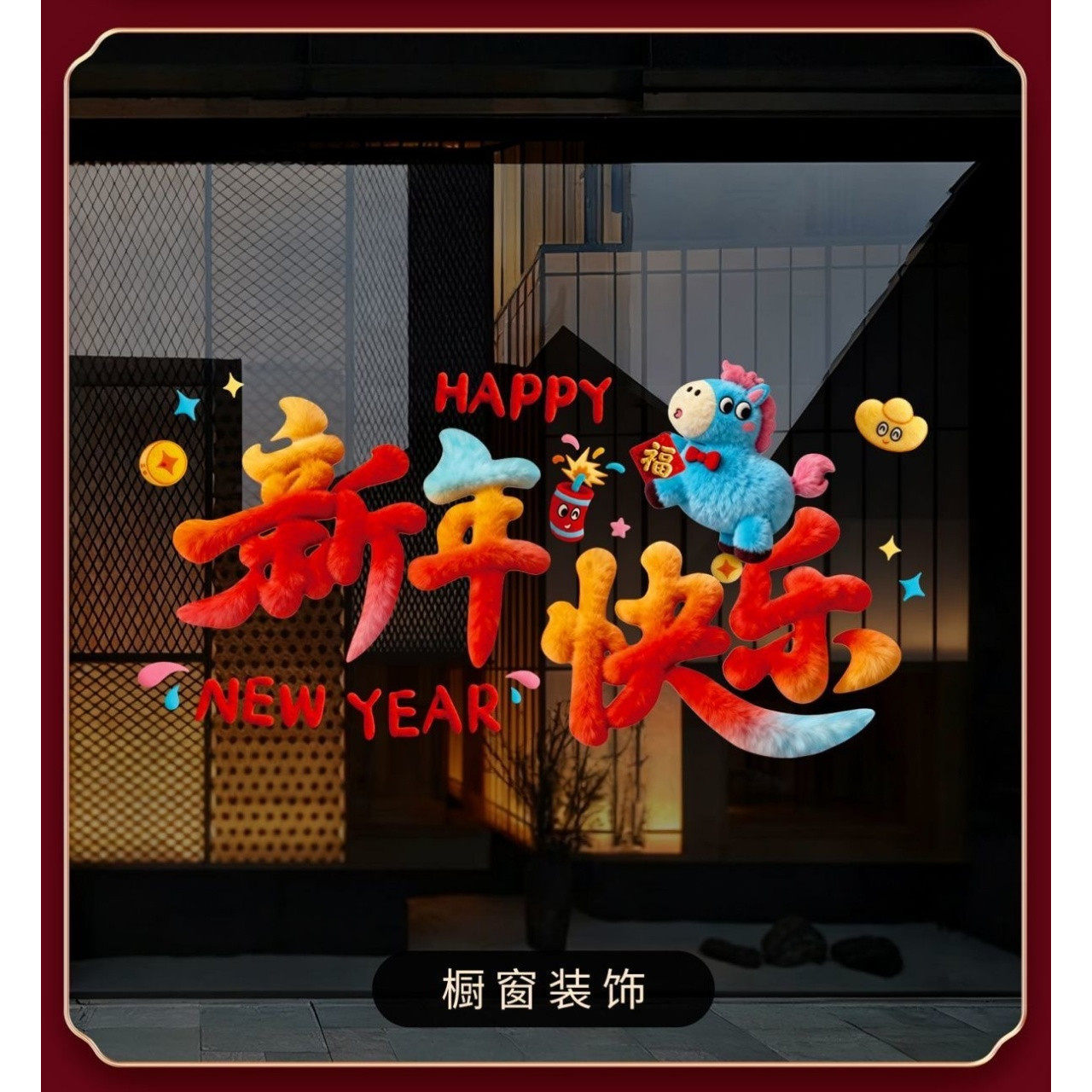2026马年大吉贴纸新年装饰窗花贴彩色渐变春节布置用品