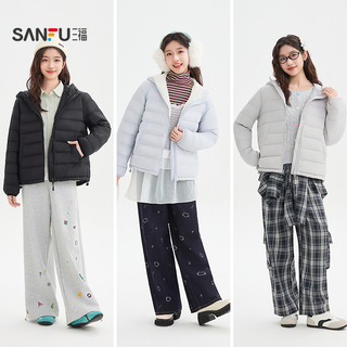 三福羽绒服女款2025新款冬季小个子韩系连帽保暖外套女装845227