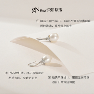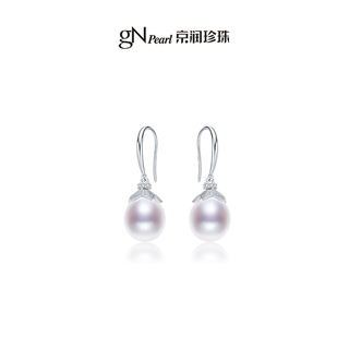 京润珍珠 丹心S925银淡水珍珠耳钩8-9mm水滴形简约送妈妈礼物P