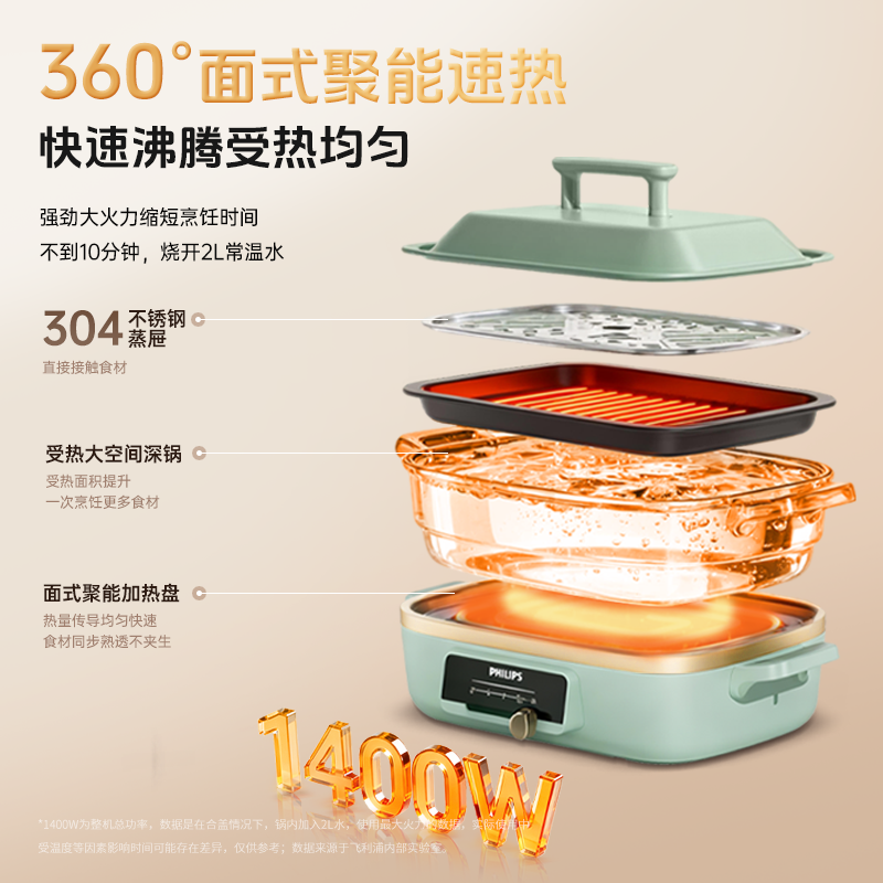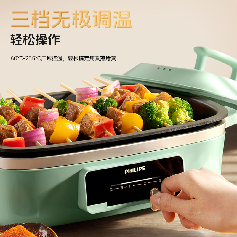 飞利浦家用电火锅多功能料理锅电热锅分体火锅电炒锅家用正品新款