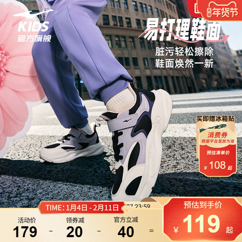 :原价119元,现在领取25元优惠券,预估到手94元,川行3|鸿星尔克童鞋女童运动鞋儿童秋季;鸿星尔克商场同款轻盈弹力鞋底,防滑耐磨,透气鞋面高弹避震后跟杯,呵护脚丫,