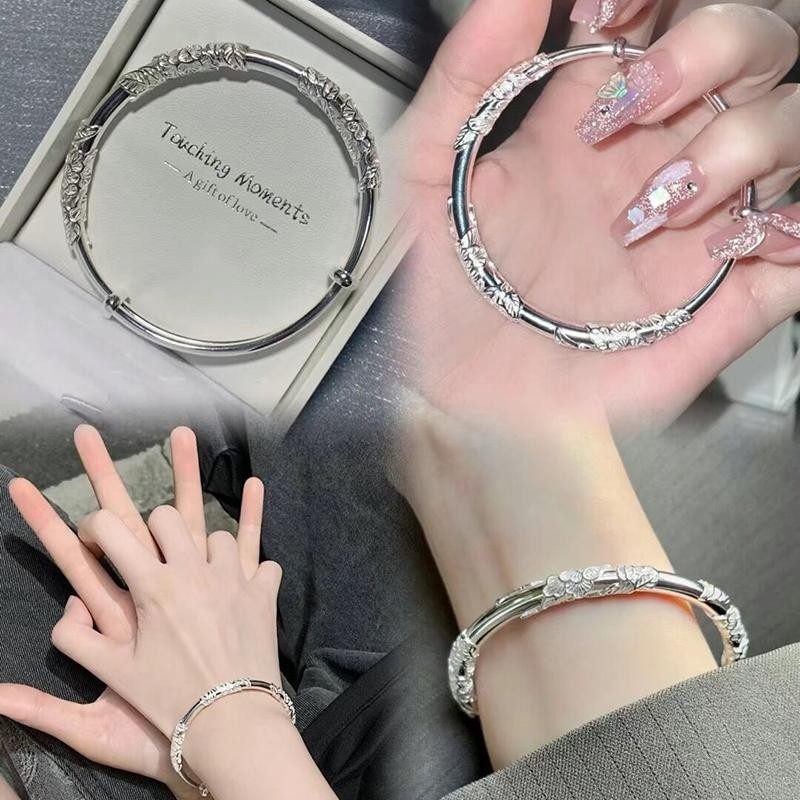 【年货节送女友】繁花银手镯女s999纯银足银实心镯子妈妈老婆礼物