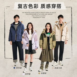 雪中飞秋冬学生潮流校园情侣男女短款貉子毛领羽绒服灯芯绒外套
