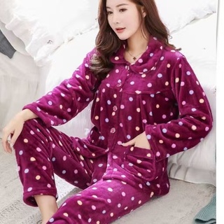 秋冬女士法兰绒睡衣长袖双面绒妈妈装加大码加厚加绒珊瑚绒套装