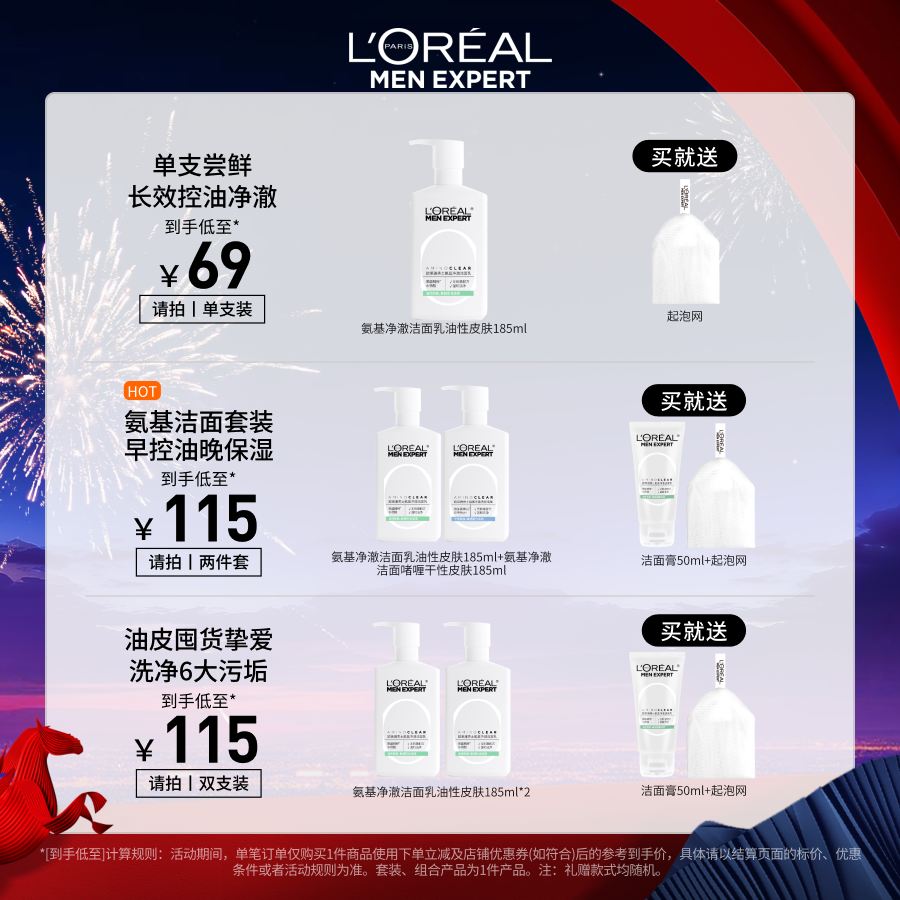 【百亿补贴】欧莱雅男士专用氨基酸洗面奶控油保湿男生洁面乳清爽