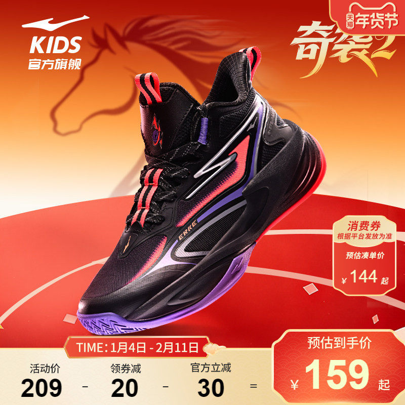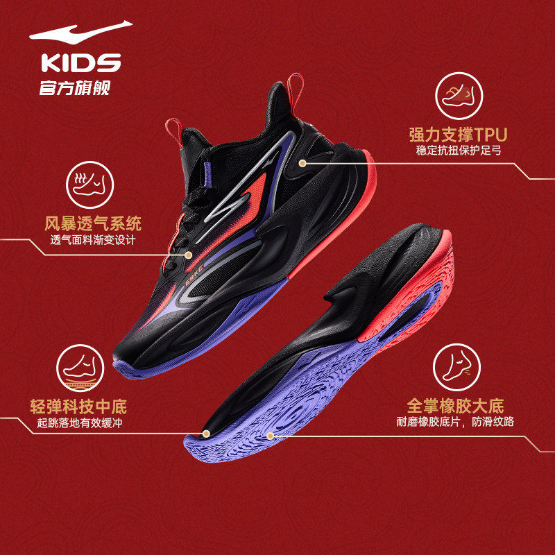 奇袭|鸿星尔克童鞋儿童运动鞋男童新年红色鞋子学生防滑篮球鞋