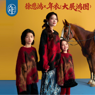 :原价553元,现在领取454元优惠券,预估到手99元,【年衣】徐悲鸿联名新中式羊毛针织衫;【天猫38开门红官方立减76元】徐悲鸿联名年衣童装亲子毛衣,新中式设计,羊毛针织,红艳喜庆,拜年必备!亲子同款,温暖又时尚