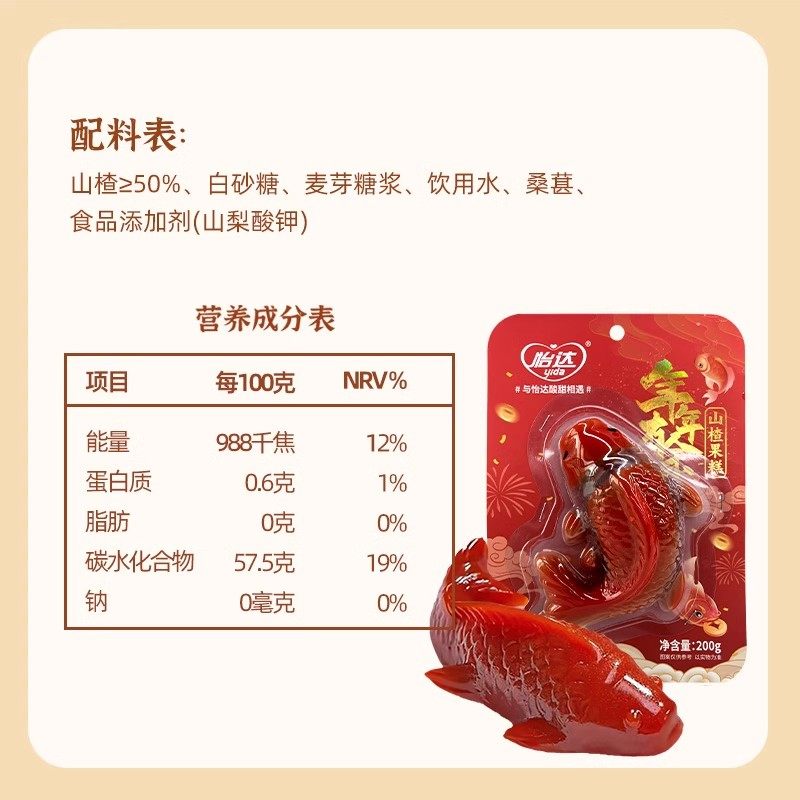 梦工厂山楂果糕锦鲤鱼200g红色好运山楂零食特产果丹皮山楂特产