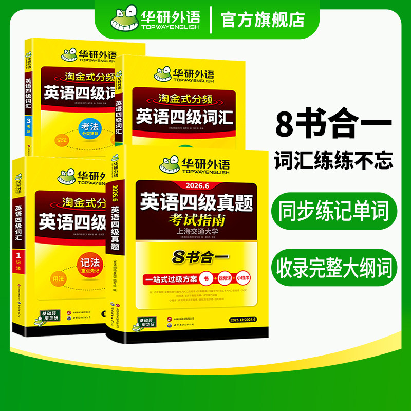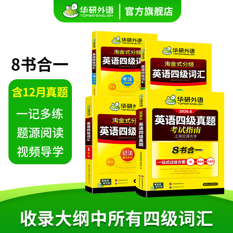 【官方旗舰店】华研外语英语四级真题考试指南八合一备考2026年6月大学英语四六级真题试卷词汇阅读听力翻译作文专项训练学习资料