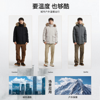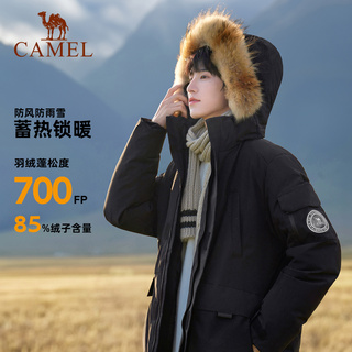 骆驼男装毛领工装派克羽绒服防水外套冬季男户外新款黑色鸭绒加厚
