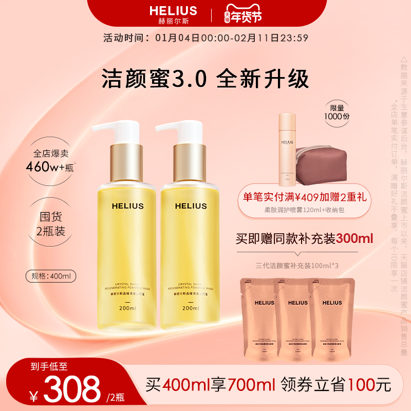 :原价193.7元,现在领取51元优惠券,预估到手142.7元,赫丽尔斯三代氨基酸洁颜蜜 温和控油保湿适配敏感肌;【抵扣淘金币+88VIP消费券】亮点提炼:新升级三代配方,更注重温和清洁与肌肤屏障友好性;氨基酸表活体系,起泡细腻易冲洗,洗后不紧绷不假滑。产品本身亮点:专为混合性及敏感肌设计,兼顾控油与保湿双重需求,添加积雪草、泛醇等舒缓成分,减少洁面过程中的刺激感;质地呈轻盈蜜状,遇水即融,清爽不厚重。