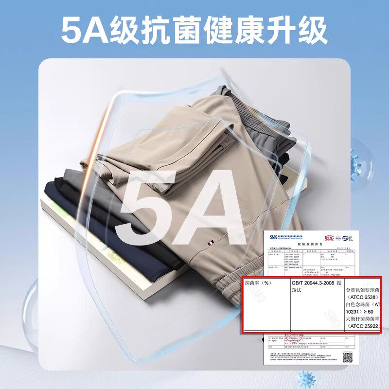 :原价239元,现在领取190元优惠券,预估到手49元,雪中飞男5A抗菌凉感冰丝裤速干直筒休闲裤;【四色可选】90斤-210斤可穿!UDF50+,≥95%有效隔阻紫外线!凉感科技面料,轻薄高弹,触感冰凉丝滑,快速带走闷热感觉!5A级抗菌健康升级,有效抑制3大病菌,水洗后具有抑菌效果,给衣服持久。抑菌呵护,舒适更健康。