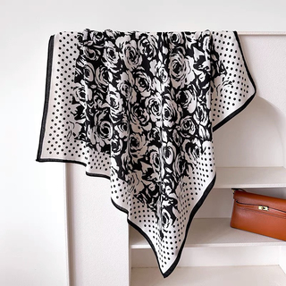 2025年新款围巾复古水墨蓝丝巾手感新款百搭大方巾90*90cm披肩