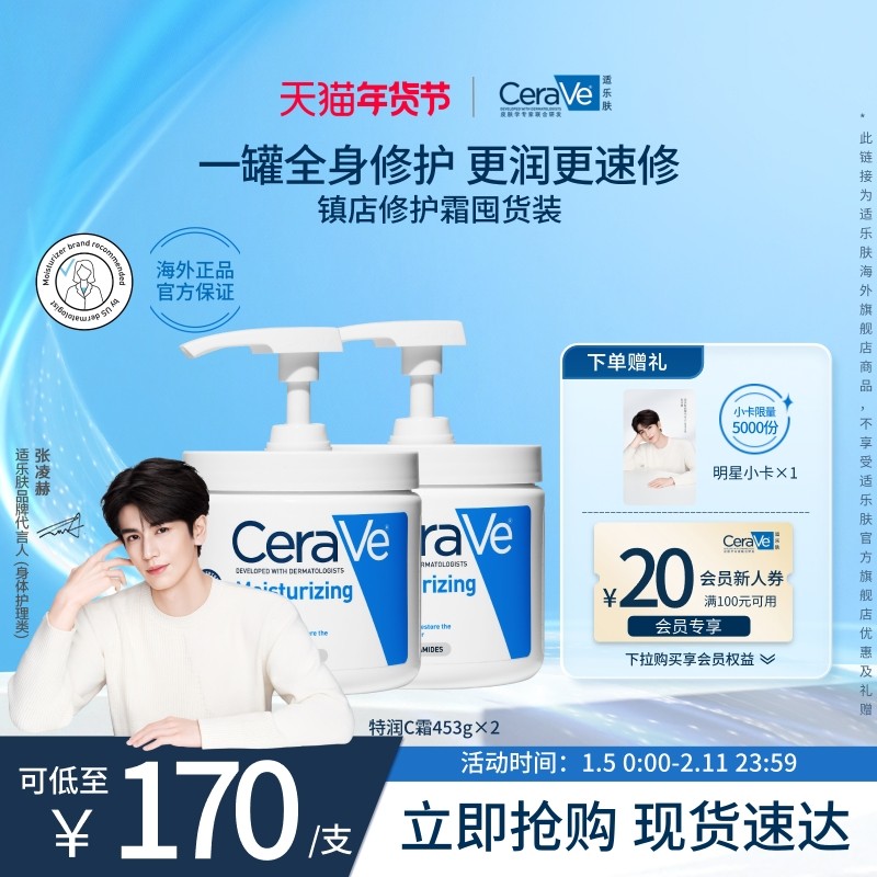 :原价235元,现在领取75元优惠券,预估到手160元,130!CeraVe适乐肤C霜罐装保湿面霜500ml;淘金币10.68+超级立减33后到手453g149.32元!叠消费券200-25后130.81元! 2倍锁水保湿,24小时修复屏障,3重神经酰胺+透明质酸,改善干,红,氧!MEV专利技术全天候保湿润肤,清爽易吸收,哑光不油腻!
