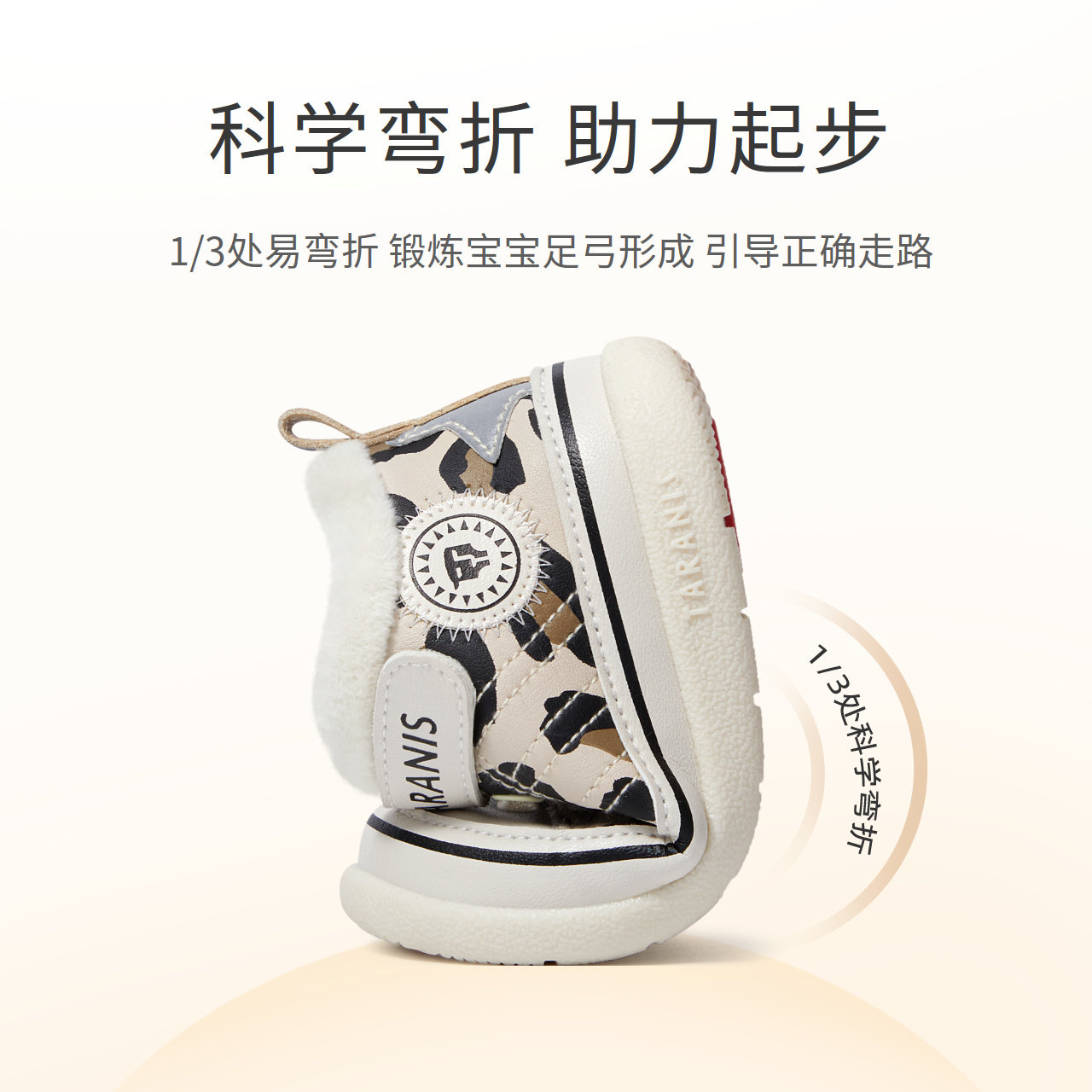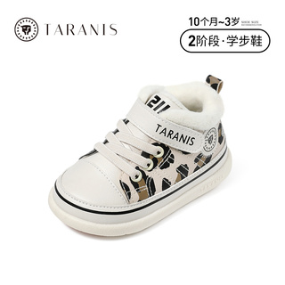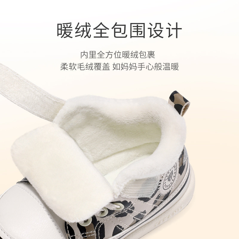 泰兰尼斯冬季新款童鞋学步鞋女童加绒保暖男宝宝豹纹婴儿鞋子