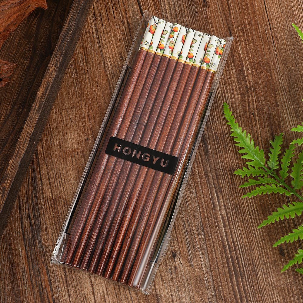 b柿柿如意筷子家用筷子餐具精选竹筷子防滑10双装红木筷子防霉筷