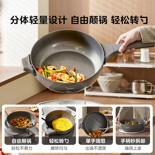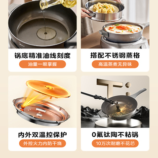 美的钛陶不粘电炒锅家用多功能分体式炒菜锅一体式铁锅电火锅煮锅