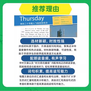 :原价27.9元,现在领取8元优惠券,预估到手19.9元,第六辑新版哈佛英语时文阅读英语七八九年级;第六辑新版哈佛英语时文阅读英语七八九年级,初中通用,年级任选,关注热点,选材新颖,有时效性很强的新闻材料,也有阅读考试中压轴常考题,全文翻译,有声朗读,精讲视频,答案详解,助力孩子英语开出好成绩!~