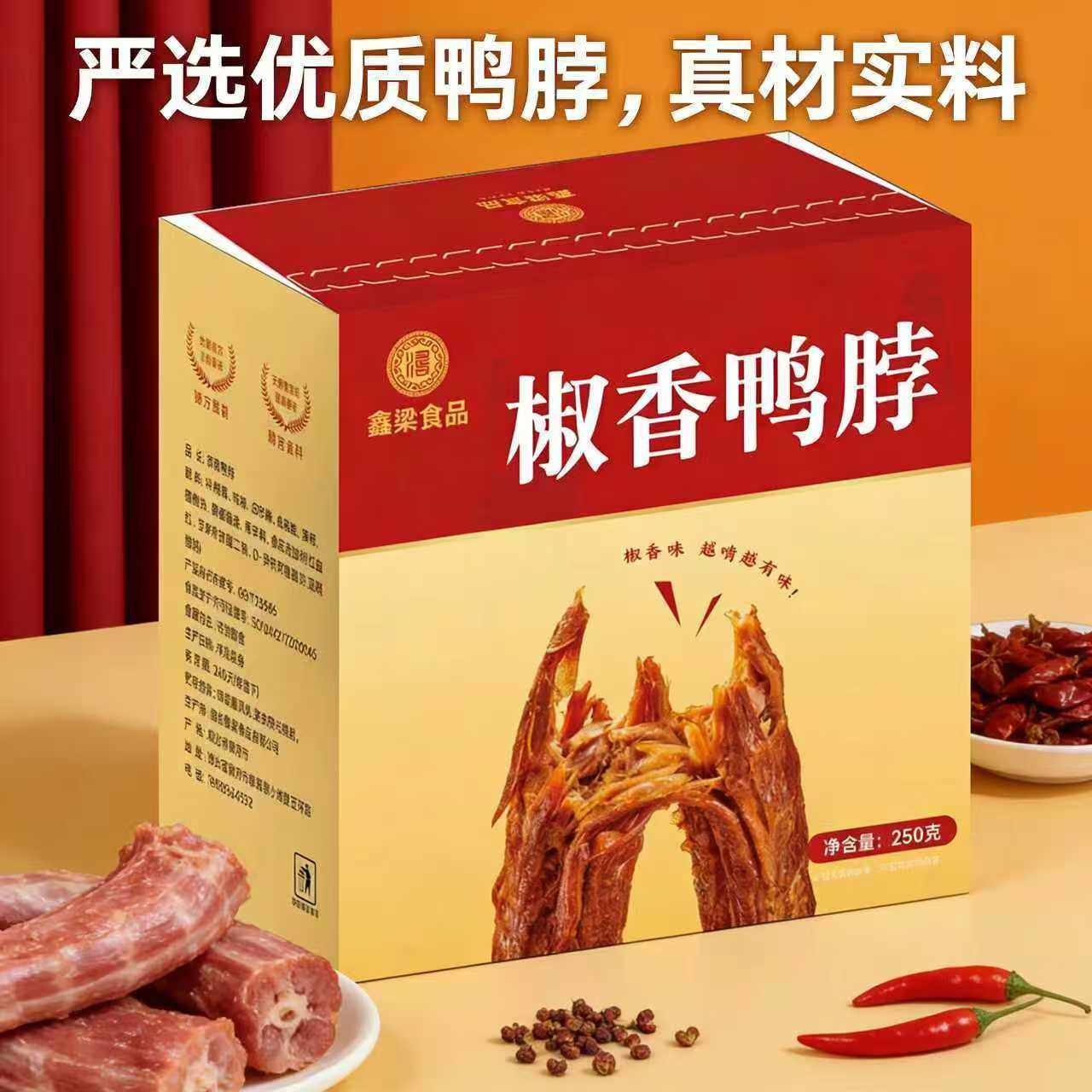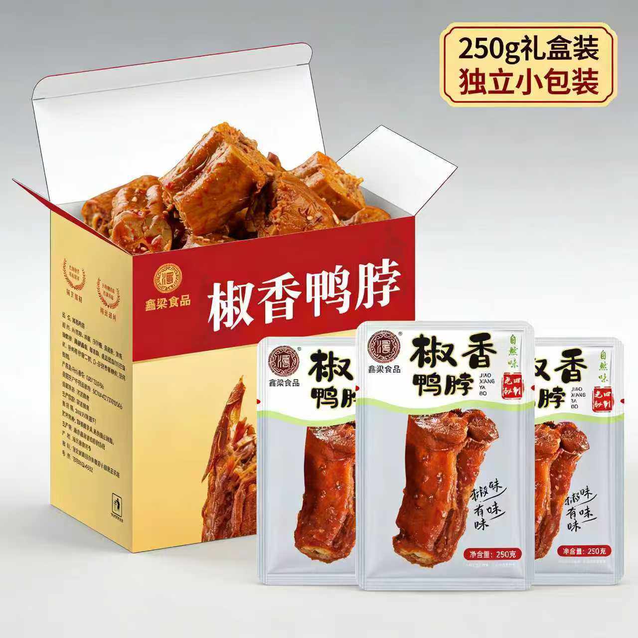 鑫梁食品椒香鸭脖250g/盒装独立包装开袋即食休闲解馋卤味零食