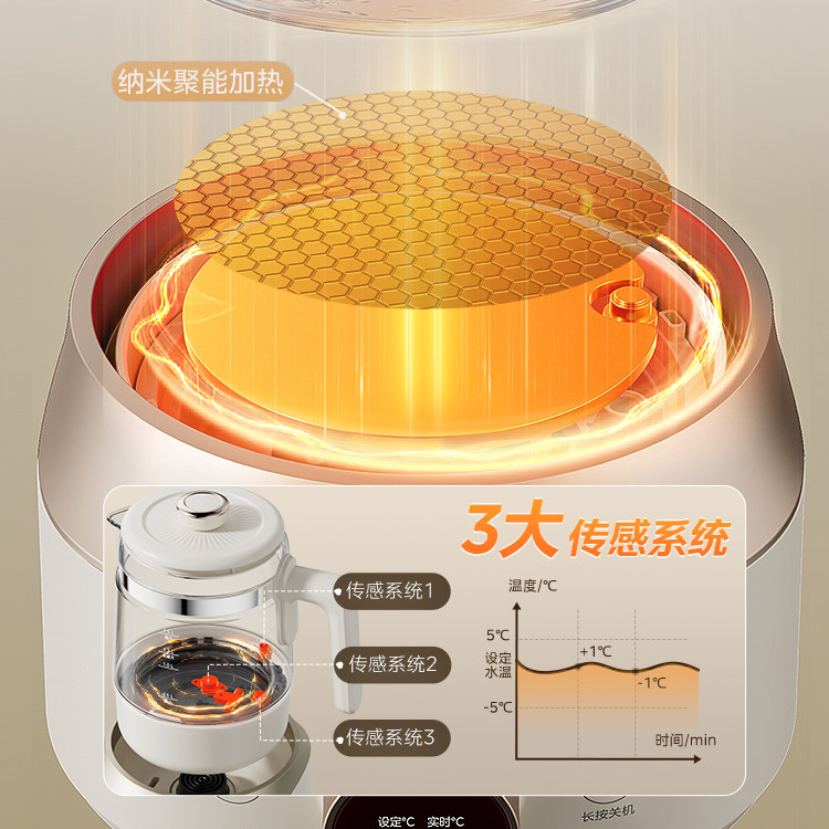 美的全玻璃恒温养生壶家用多功能办公室小型煮茶壶电热水壶纯玻璃