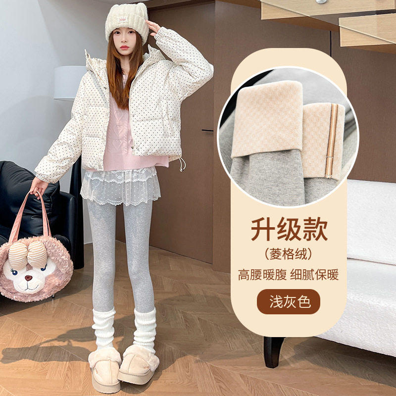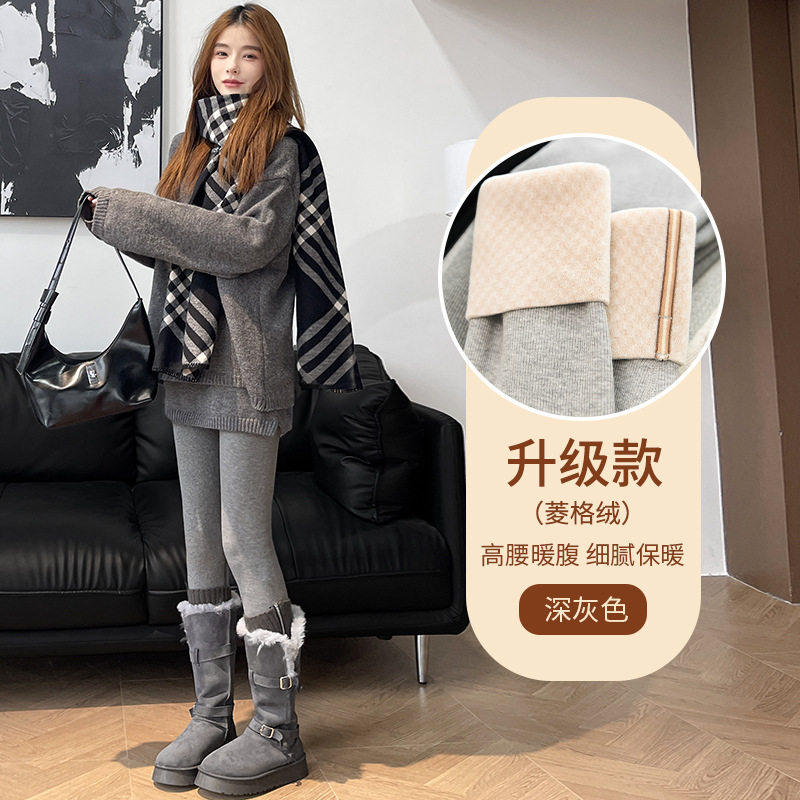 冬季新款女装兔貂绒护膝保暖裤加绒加厚棉裤螺纹高腰打底裤女L