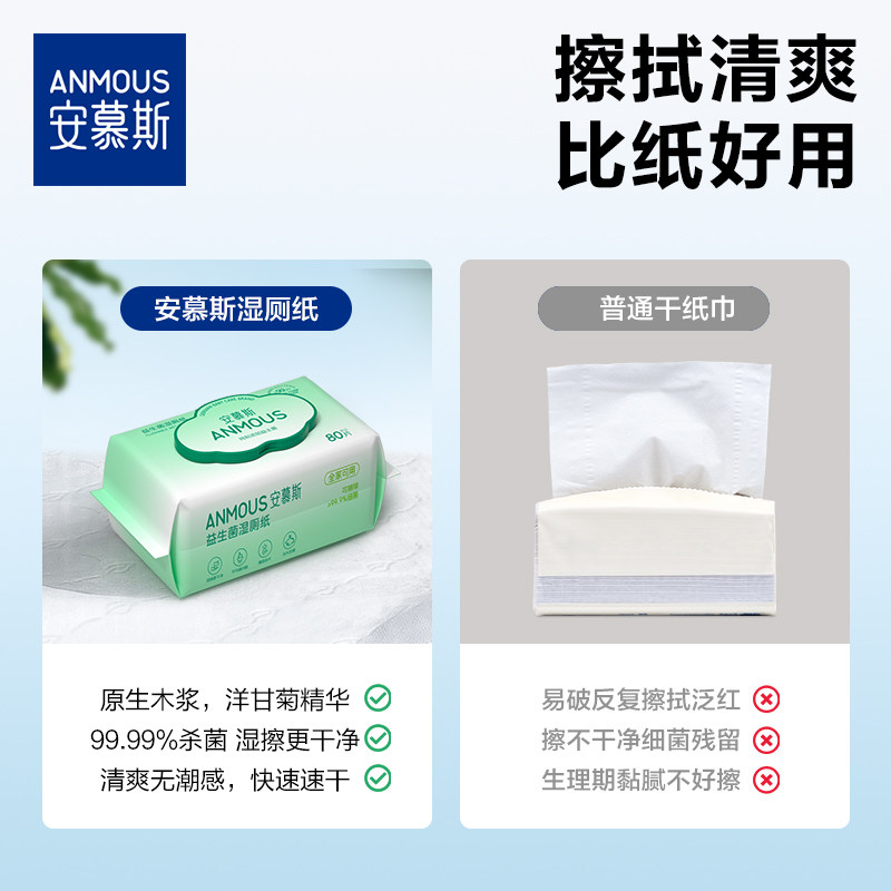 下拉详情享优惠丨安慕斯益生菌湿厕纸私处擦屁股湿巾纸非棉柔巾
