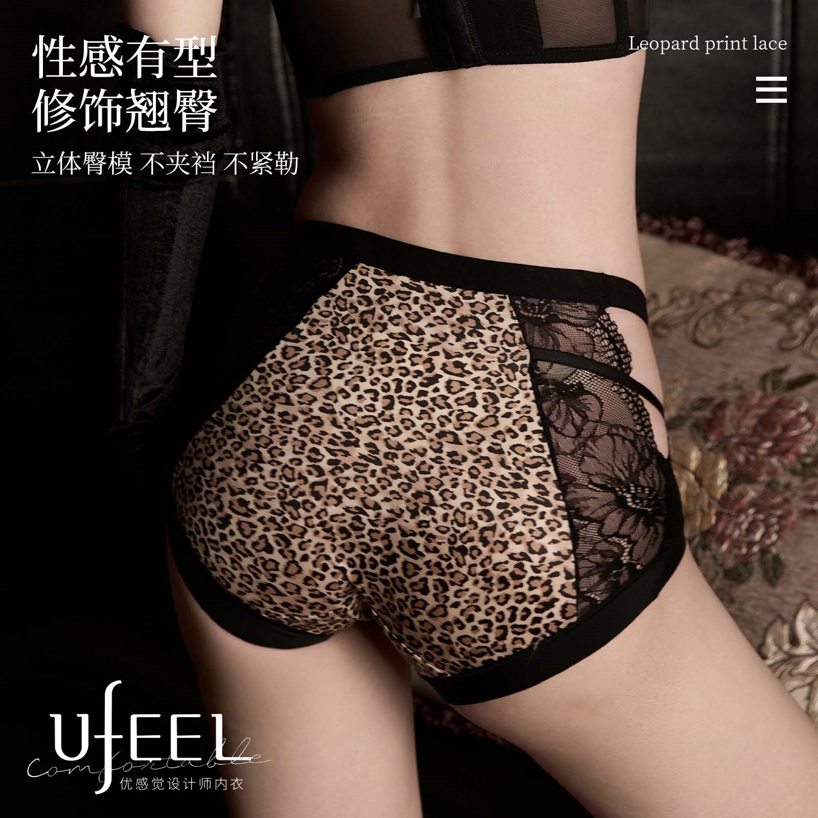 UFEEL豹纹性感10A抑菌蕾丝镂空舒适纯欲高级透气内裤女中腰2553
