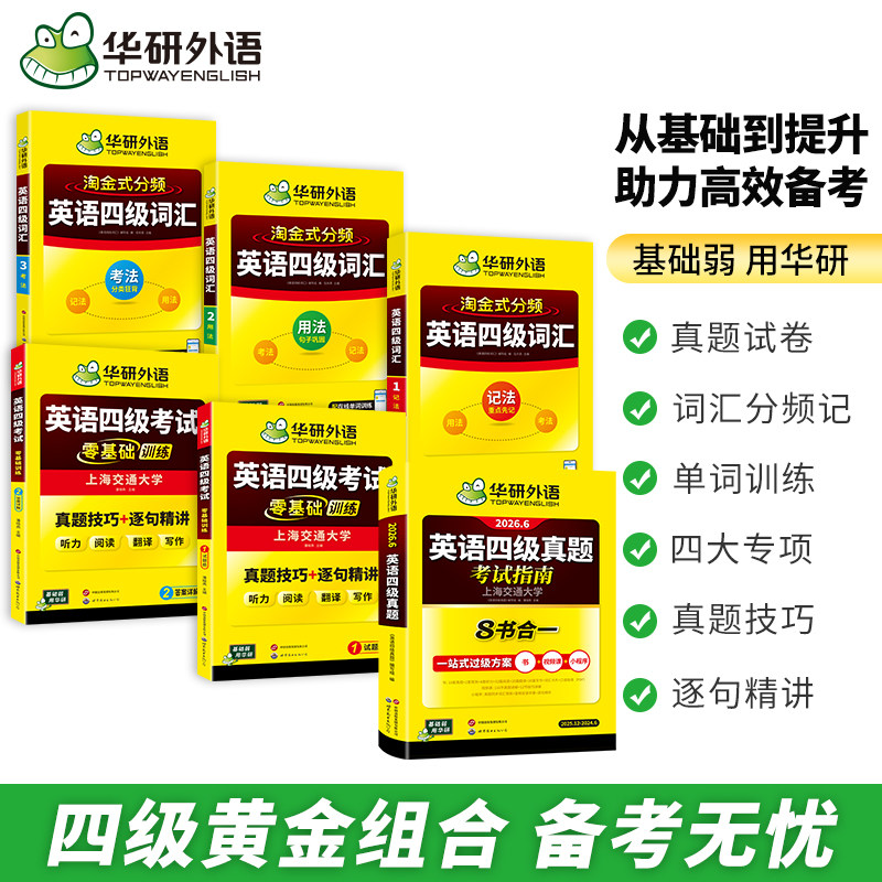 华研外语英语四级英语考试真题试卷备考2026年6月大学英语四六级历年真题词汇单词阅读听力翻译作文指南专项训练学习资料全套4级