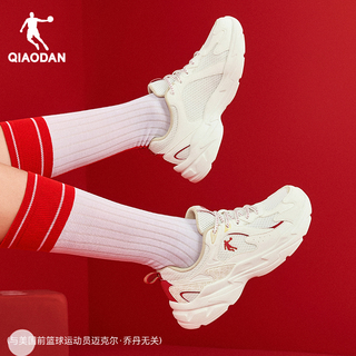 乔丹新年款红色休闲鞋女运动鞋2026春季新款网革拼接老爹鞋女鞋子
