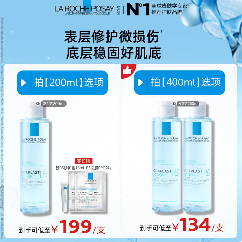 理肤泉B5修复水蓝水积雪草保湿维稳舒缓敏感肌修护屏障爽肤水B