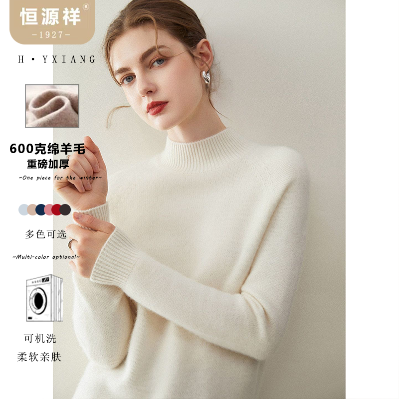 恒源祥女士冬季重磅加厚毛衣女士羊毛衫宽松百搭毛衣女针织打底衫